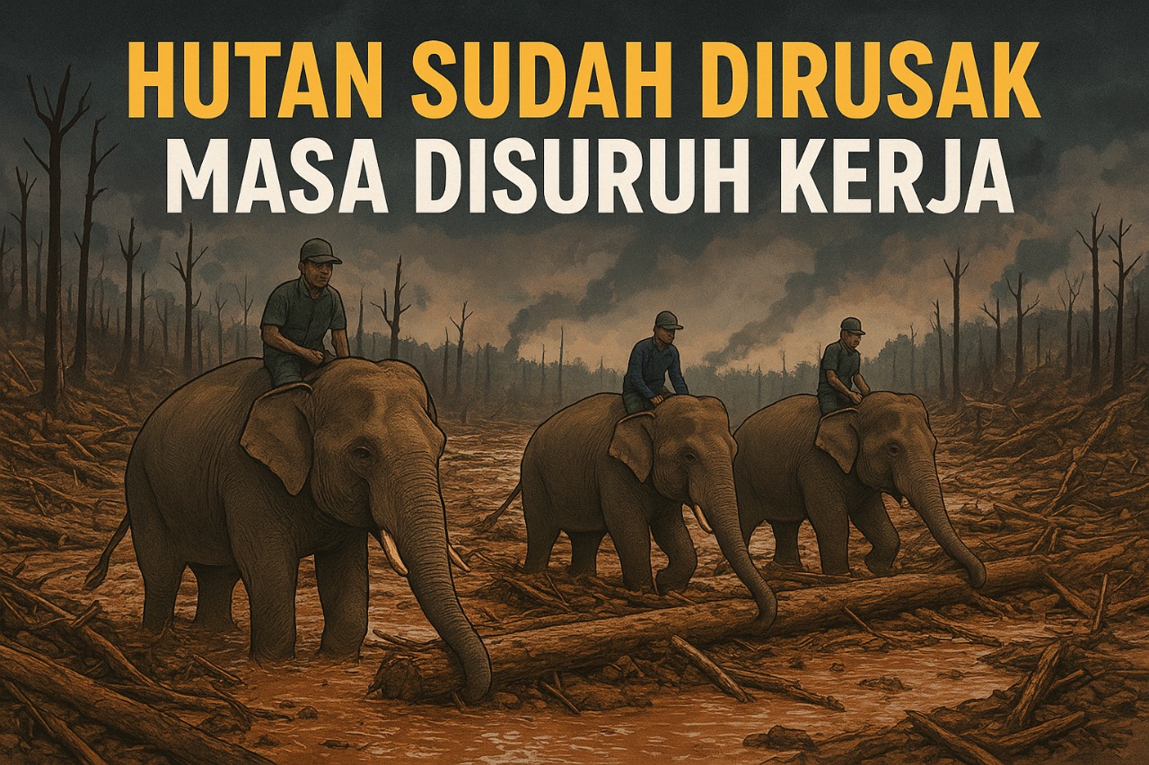 Mereka bergerak dengan tenang, patuh pada instruksi pawang, menarik kayu-kayu yang bahkan dua mesin truk pun tak sanggup memindahkannya.Banyak warga menyebut gajah sebagai penyelamat, sebagian memuji kekuatan dan keteguhan mereka. Namun jarang yang bertanya: apakah mereka baik-baik saja? Apakah mereka ingin berada di sana? Tidak sedikit yang lupa bahwa mereka juga korban, hanya saja tidak dapat bersuara.Jika situasi ini dibalik, seakan seseorang yang rumahnya dibakar, ladangnya digusur, dan keluarganya tercerai-berai justru diminta membantu membersihkan puing-puing sebagai balas jasa.