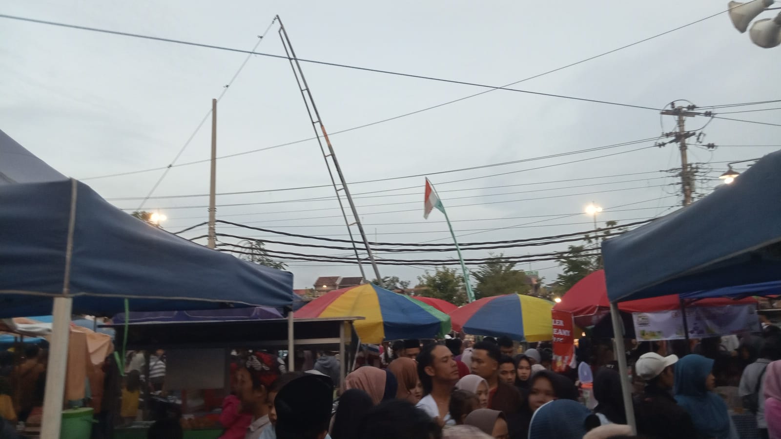 Warga tampak antusias memilih jajanan, sementara anak-anak hingga orang tua berbaur menikmati kemeriahan.