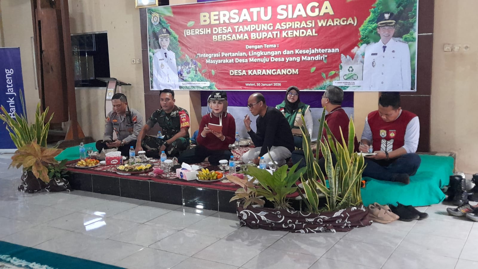 Pelaksanaan Bersatu Siaga berlangsung di Desa Karanganom, Kecamatan Weleri, Jumat (30/1/2026). Selain kerja bakti membersihkan lingkungan, agenda juga diisi dialog terbuka terkait isu pertanian, pengelolaan sampah, hingga kebutuhan pembangunan desa menuju kemandirian.
